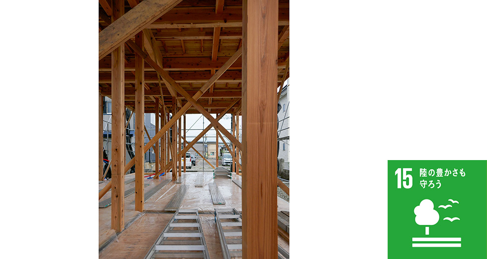 住宅を1棟建てるには、構造体としての柱や梁はもちろん、内装材や造作家具など、たくさんの木材が必要です。近年は世界各地で、森林火災の頻発、農地開拓、違法伐採などによって森林減少が加速しています。その対策として、植林が有効であるとされています。