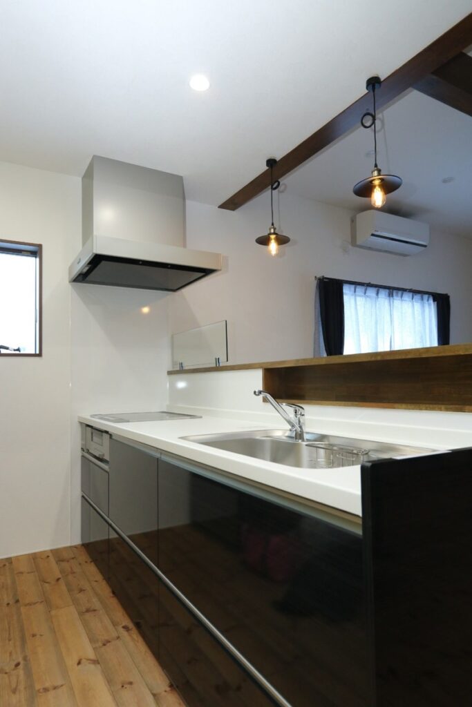 キッチンにはカウンターも併設。食事はもちろん、子どもたちがママと会話したり、勉強もできます。来客対応としても想定しています。