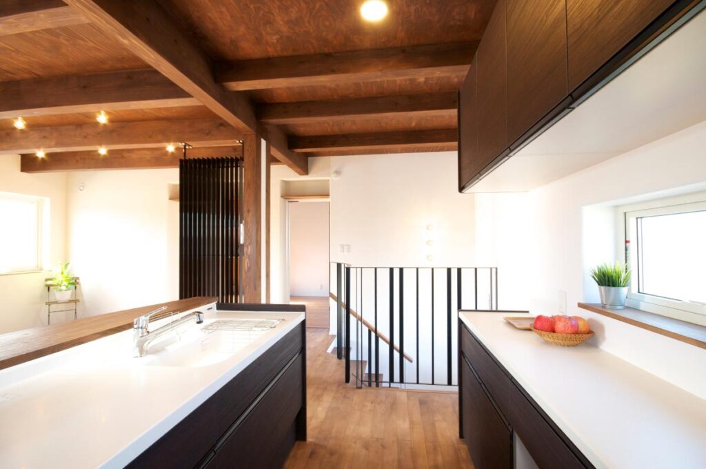 2階に配置したリビングは、ダイニングやキッチンと一体になっており、開放的で明るい室内を実現しています。