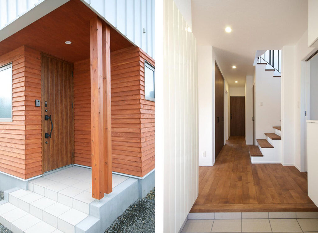 玄関まわりのウッディな仕上げがご家族をやさしく迎えます。